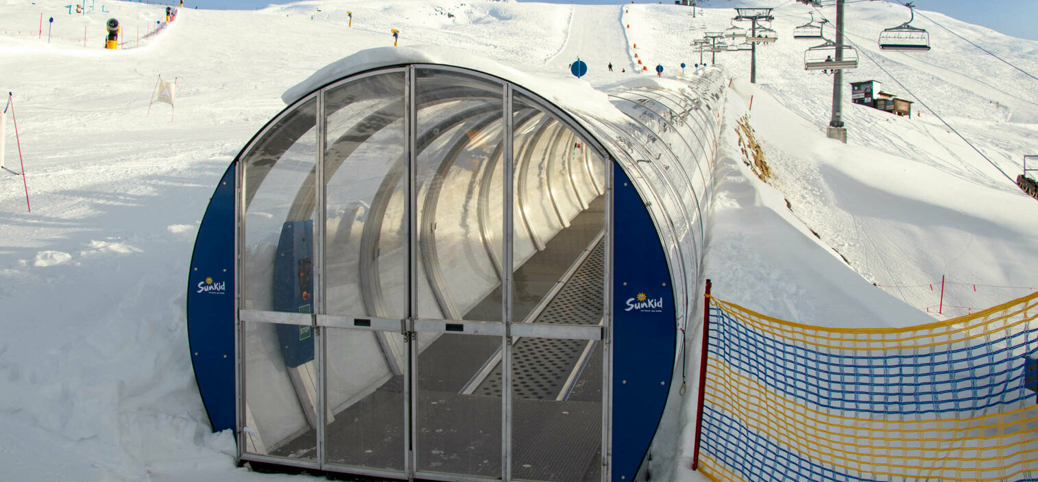 Das moderne Förderband der aktuellen Sunkid-Generation Type N gewährt einen sicheren und einfachen Einstieg ins Skifahren und Snowboarden: Das 75 Zentimeter breite Endlosband mit „Blue Eye“-Oberfläche bietet besten Grip bei allen Bedingungen. Die EVO-N-Galerie überdacht das Förderband auf der gesamten Länge und schützt vor Wind- und Wettereinflüssen – sowohl die Fahrgäste als auch die Komponenten des Förderbandes. Einfach zu verriegelnde Flügeltüren am oberen und unteren Ende der Galerie verhindern darüber hinaus das Eindringen von Schnee bei Nichtbetrieb.