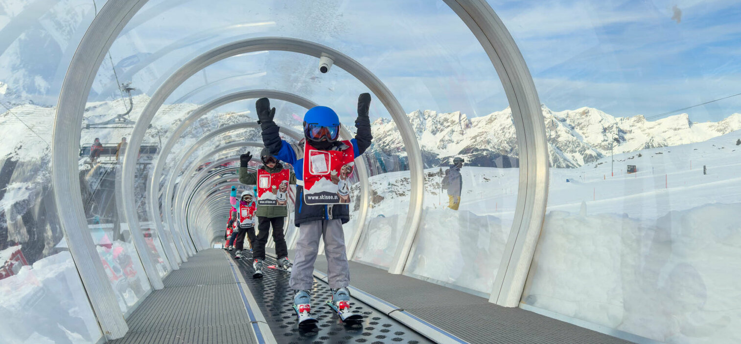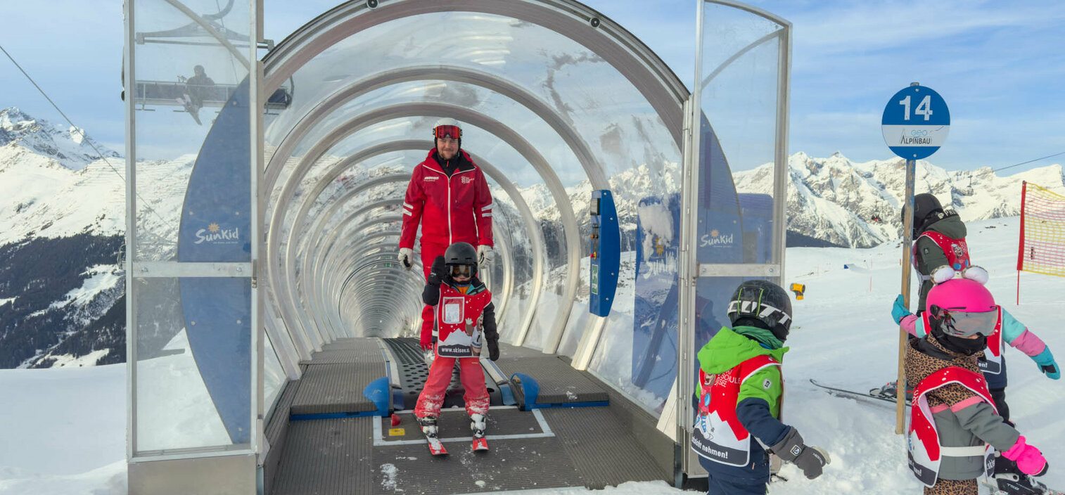 Das Skigebiet See im Paznauntal (Österreich) eröffnete zur Skisaison 2025/2026 ein komplett neues Areal für Familien und Skianfänger – mit breiten Übungshängen, einem eigenen Family-Snowpark und optimierten Pistenverbindungen. Mit dem Sessellift „Familienglück“ lässt sich dieses Gebiet inklusive Freestyle Area nun von Skifahrern aller Könnerstufen leicht erreichen. Dort angekommen, direkt neben der „Familienglück“-Talstation, ermöglicht der neue 152 Meter lange Sunkid-Zauberteppich „Almwiese“, Wintersport-Neulingen und Skischülern viele entspannte Auffahrten zwischen ihren Übungen auf der anfängerfreundlichen blauen Piste 14.