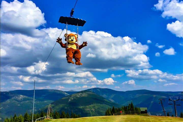 Skydive steht für Abenteuer in luftiger Höhe. Die einzigartige Konstruktion ermöglicht es, dieses Ride nicht nur als einzelne Attraktion zu nutzen, sondern damit auch eine zweite Ebene über bereits bestehenden Anlagen, Wegen, Bächen, usw. zu nutzen. Egal ob der Start von einer Plattform, einem Hügel oder einem Gebäude erfolgt, der Skydive lässt sich durch seine stabile Konstruktion in fast jedem Gelände installieren und benötigt trotz einer Seillänge von bis zu 50 m nur eine geringe Standfläche. So sind auch mehrere Plattformen nebeneinander problemlos möglich. Über 250 installierte Anlagen weltweit sprechen eine klare Sprache: Der Skydive wird auch Sie und Ihre Gäste in seinen Bann ziehen!