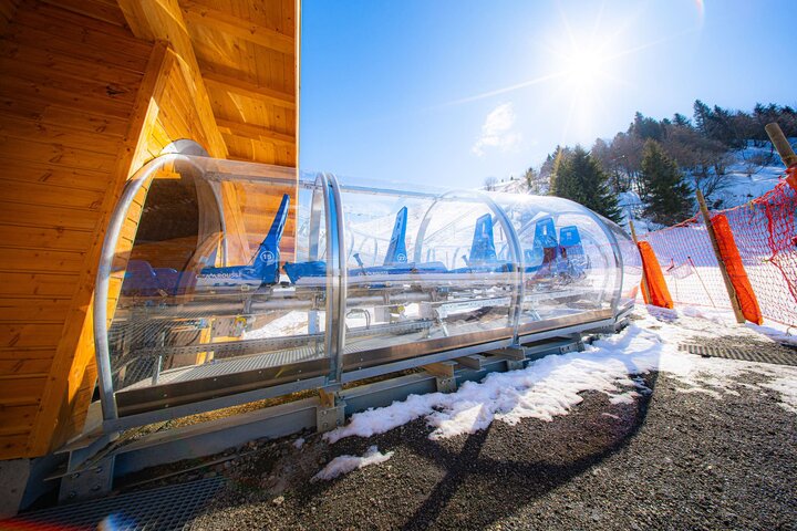 Special transport trolleys allow flexible garaging, fast and manoeuvrable, cheaper option if no existing infrastructure is available, by a crane the toboggans can also be brought from the cellar to the track