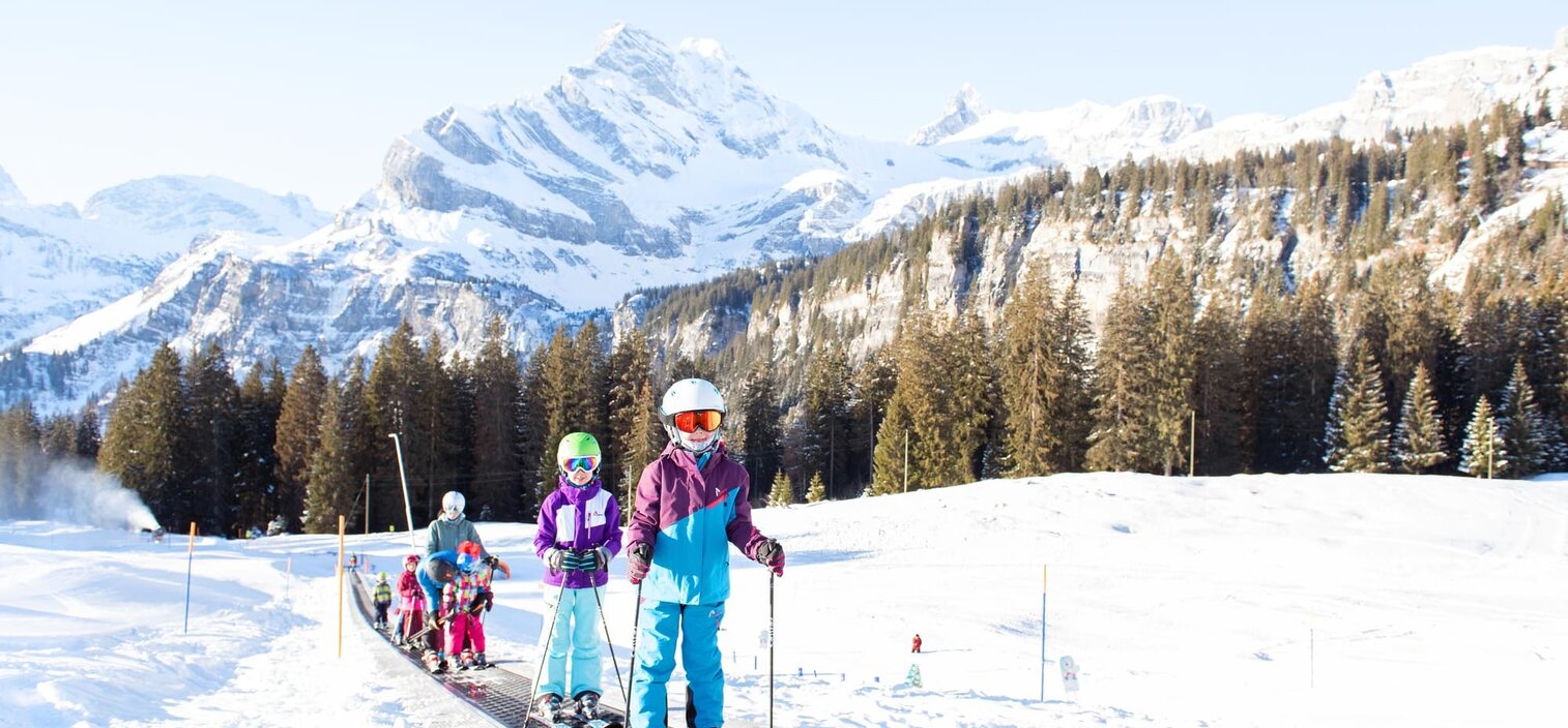 Near the children's area of the ski resort Braunwald (CH) there is a practice area called "Zwergen-Land Grotzenbüel", which is ideal for children and also adults who dare their first attempts on skis or snowboard.