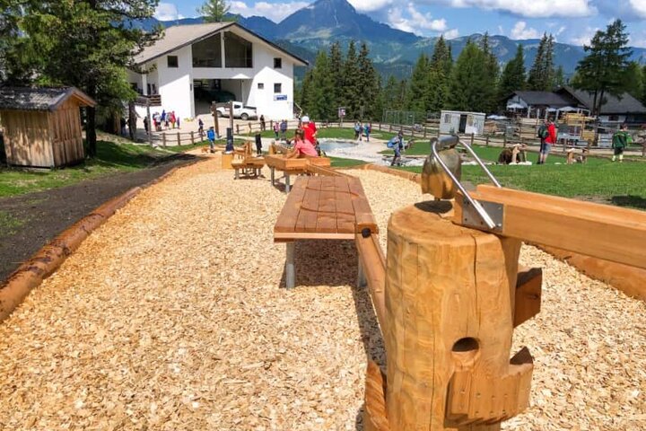 SummerPark La Crusc in the Italian Dolomites offers a wide range of activities for young and old guests. The circular path within this summer park leads through several stations, such as a dragon cave or water games, past two huts and is almost the whole day in the sun. This year's season comes up with new attractions. One of them is the Wooden Ball Tracks from Sunkid, which has already been tried and tested numerous times.