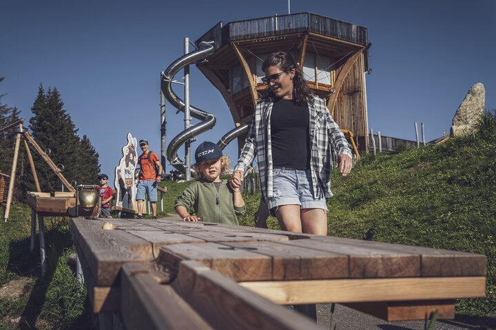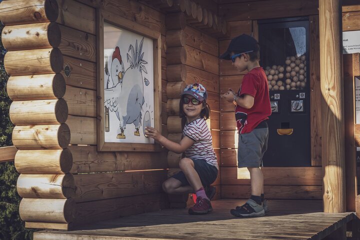 The children's and family attractions at Madrisa Kinderland (Klosters, Switzerland) are all about the mascot chicken Hanna and her four friends - the Madrisa gang.