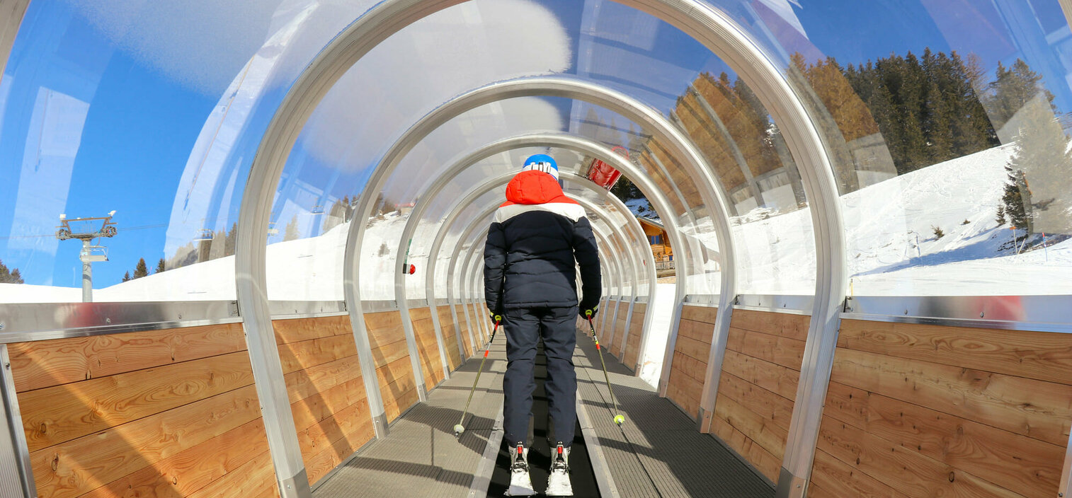 „Das zweite 2024 in Portes du Soleil realisierte Projekt (im Gebiet von Champéry) war mit Demontage, Umpositionierung und Verlängerung alles andere als eine Standardinstallation“, so Axel Halder. „Es zeigt die Variantenvielfalt und flexible Adaptierbarkeit der Sunkid-Zauberteppiche und -Galerien inklusive handwerklichem Know-how von Borer. Die verlängerte Galerie mit abplanbaren Ein- und Ausgängen ermöglichet den seitlichen Ein- und Ausstieg in die Förderanlage. Der automatische Start/Stop bei Nichtbenutzung steigert die Energieeffizienz. Die halbhohe seitliche Holzverkleidung bietet soliden Schutz und verleiht der Galerie einen rustikal-alpinen wie nachhaltigen Look.“