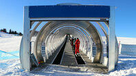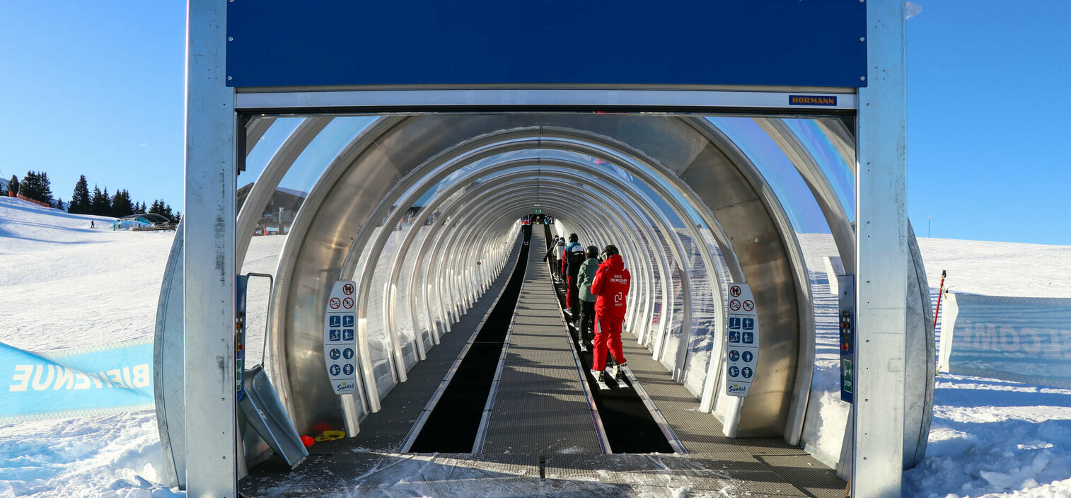 Die Gäste beider Förderbänder sind durch ein gemeinsames Galeriedach auf der gesamten Länge vor Wind und Wetter geschützt. An den Enden der Anlage wurden elektrische Rolltore installiert. Diese bieten nicht nur hervorragenden Schutz für alle Bauteile, sondern ermöglichen auch die Lagerung von Zäunen, Schildern, Schaufeln etc. innerhalb der Galerie nach Liftschluss. Dies sichert einen schnellen Betriebsstart am jeweils nächsten Morgen.