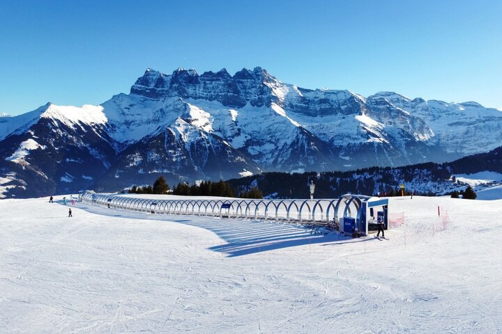 Die neuen Sunkid-Förderbänder in Morgins sind wie das umgebende flache und breite Pistenprofil vor allem auf Anfänger und Kinder zugeschnitten. Neben kurzen Wegen und einfacher, komfortabler Beförderung besticht die Gesamtanlage auch durch ein beeindruckendes Panorama auf die umliegenden Gipfel – allen voran auf das berühmte Massiv der Dents du Midi. Die exponierte sonnige Ausrichtung sorgt dafür, dass die Zauberteppiche den ganzen Tag über angenehm genutzt werden können.