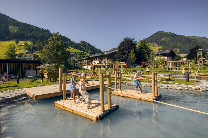 Bereits 2023 erweiterte die Ganzjahresdestination Saalbach-Hinterglemm (Österreich) ihr Sommerangebot mit einem großen individuell gestalteten Erlebnisweg und Wasserspielplatz sowie einer fulminanten Abenteuer- und Spielewelt aus der Sunkid-Produktwelt Wood’n’Fun.