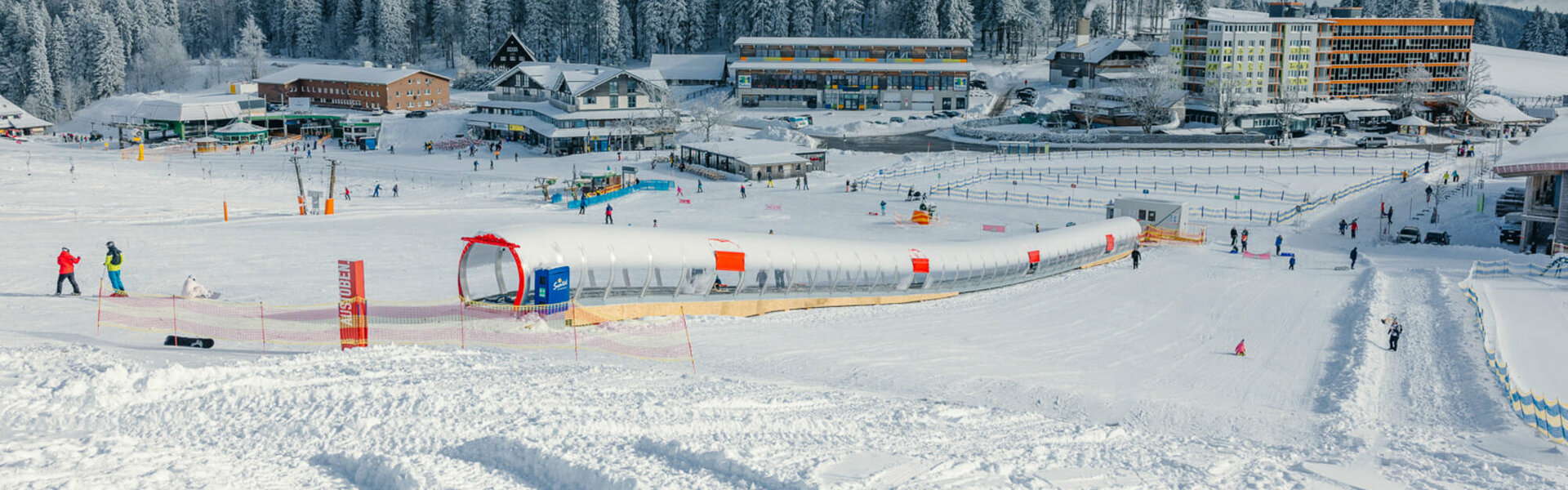 With a Sunkid Moving Carpet (length: 76 m) of type N, the Feldbergbahnen have created a great new offer at Seebuck - in the immediate vicinity of two T-bar lifts and a 6-seater chairlift - despite a "mixed" 22/23 season. The addition of two more Sunkid lifts (60 and 34 meters long) at the start of the 23/24 winter season (a report will follow shortly) confirms the success of the chosen direction.