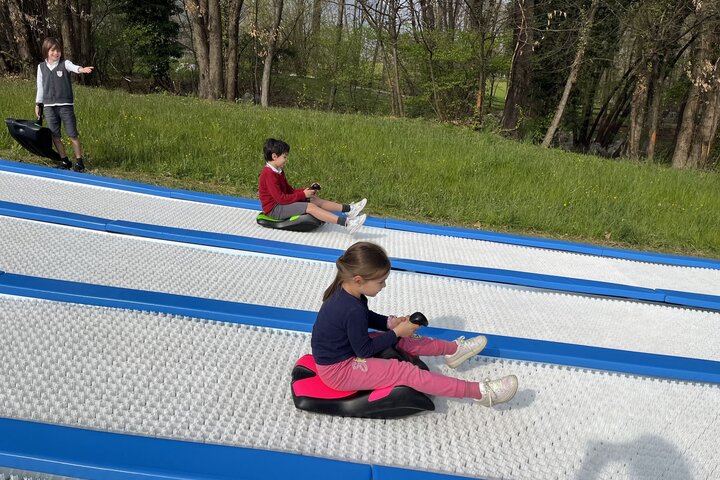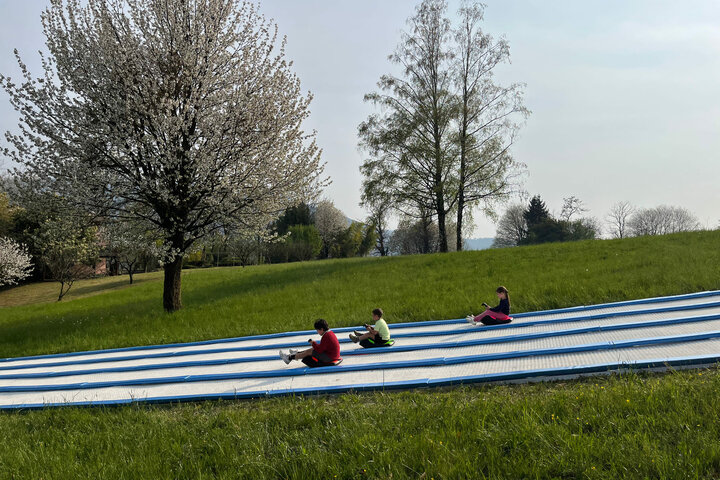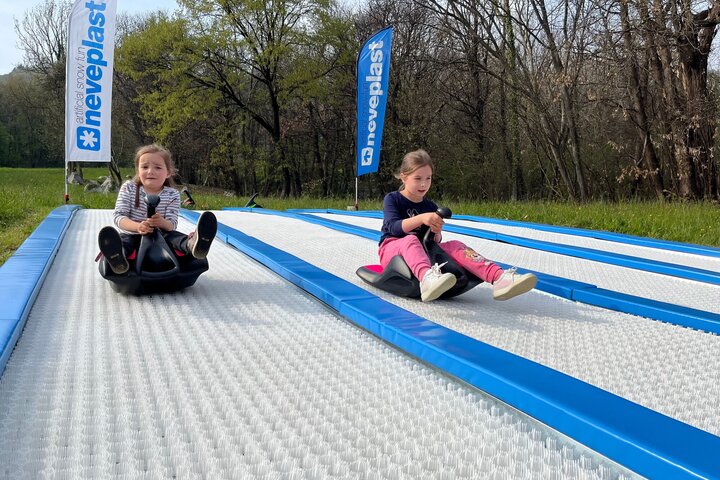Children from the age of 4 can already whiz down the track sitting upright or semi-upright on the Sklide Bob with a "joystick" in the middle. The Sklide system is quick and easy to assemble and thanks to the parallel tracks, nothing stands in the way of a head-to-head race with the whole family.