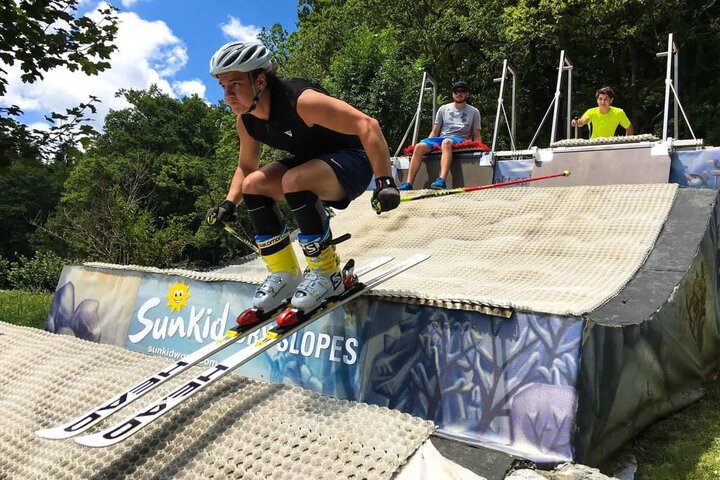 With the Sunkid plastic mats, skicross World Cup skier Katrin Ofner catapults herself to the top of the world "right from the start
