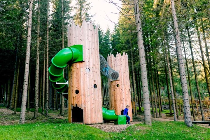The Teichalm is located in the heart of the Almenland Nature Park northeast of Graz. There, a new forest movement and adventure garden was created in the AlmErlebnispark. This complements the forest ropes course and, as a "mini climbing garden", offers an excellent alternative for younger guests. Special movement elements were developed for this purpose to support motor skills.