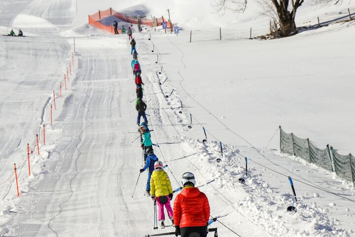 One new Comfort Starsmall ski lift was installed in each of the two municipalities. The Sunkid Comfort Star with its rotating platter on a steel cable is suitable for various slopes and can be used by skiers and snowboarders of any size.The platter can be held between the legs, gripped by the holding grip at the bracket’s sides, or used as a bracket anchor in the back.