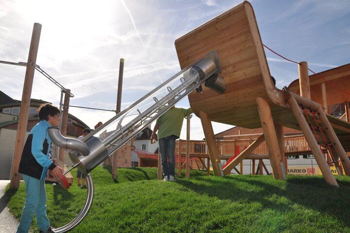 In the Styrian city of Weiz, energy has always been a big issue. As one of the largest projects on the topic of energy, the Funergy- Park was opened a few months ago. Embedded in an "ordinary" playground, it offers playground equipment on the topic of "energy" and "physics". The aim of this playground is to introduce children to the topic of energy and the closely related physics in an interactive way. The wooden playground equipment with its urban design was manufactured by Sunkid's cooperation partner Almholz.