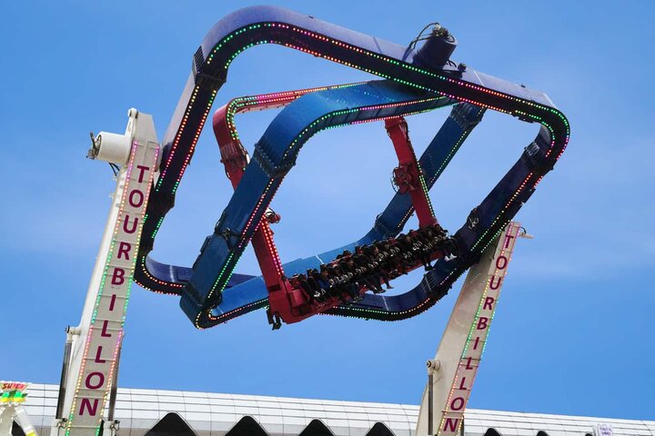 Le Tourbillon est inspiré d'un gyroscope géant et expose les passagers à la force centrifuge de manière tridimensionnelle. Trois éléments de cadre entourant la nacelle se déplacent dans les directions les plus diverses. Cela augmente fortement l'imprévisibilité du ride et les passagers sont véritablement "secoués".