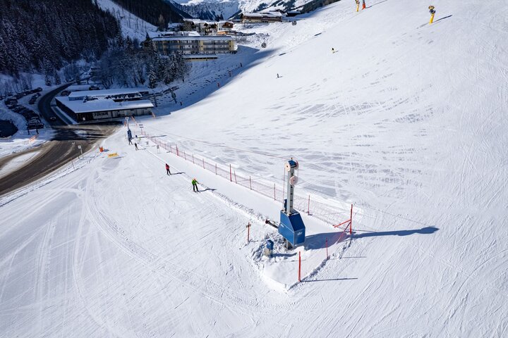 Un téléski à corde Sunkid SwissCord de 80 m de long assure depuis maintenant 5 saisons d'hiver une liaison simple et rapide entre la Hochalmbahn et la Zwölfer-Nordbahn à Saalbach-Hinterglemm.