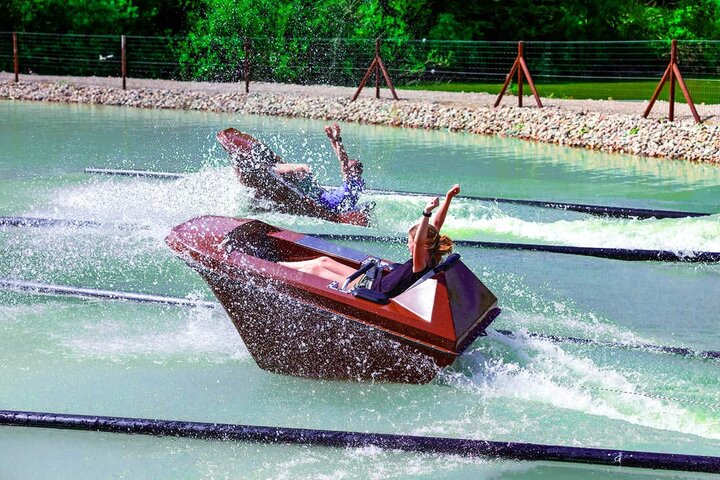 Après avoir été montés dans le bateau, ces derniers remontent lentement et tranquillement la rampe de 8 mètres avec le passager. C'est le moment idéal pour profiter de la vue, car tout ne reste pas si calme. Le bateau atteint le point le plus élevé de la rampe, se désengage et dévale la piste à une vitesse pouvant atteindre 40 km/h. Arrivé au bout, l'engin décolle et glisse jusqu'à six mètres au-dessus du lac de canoë, avant d'atterrir dans l'eau dans un mouvement vif. Mais il ne faut pas avoir peur de se mouiller, car à part quelques éclaboussures, on reste parfaitement sec.