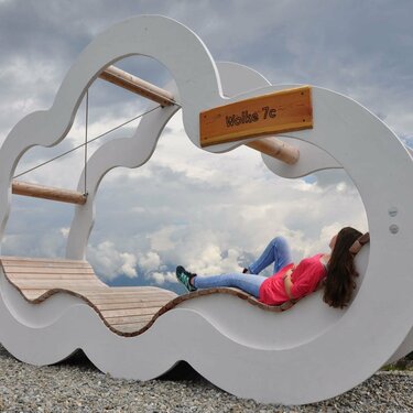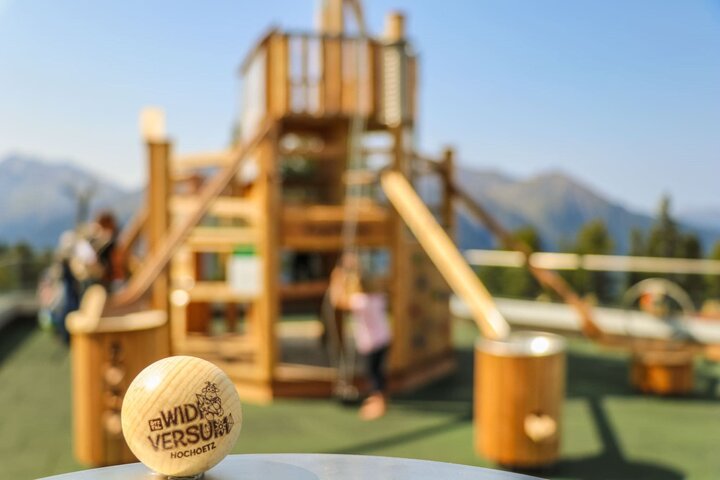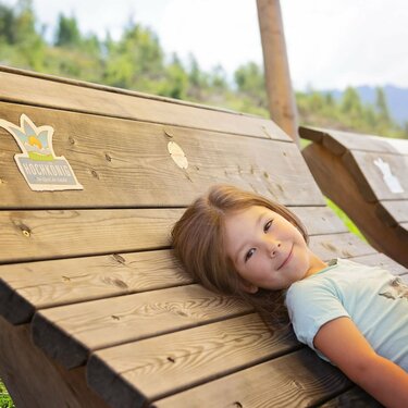 Le lettere giganti di Sunkid sono alte fino a quattro metri. Realizzate in essenza di larice di montagna della Stiria privo di trattamenti, non sono solo un richiamo visivo e un motivo fotografico apprezzato tra i turisti e i residenti in loco, ma anche un divertente parco giochi per i più piccini. Una T diventa una doppia altalena; una R diventa una torretta da scalata e una E diventa uno scivolo. In questo modo, ogni lettera si trasforma in un'esperienza ludica originale.