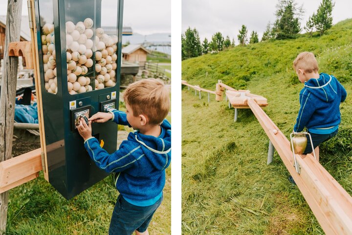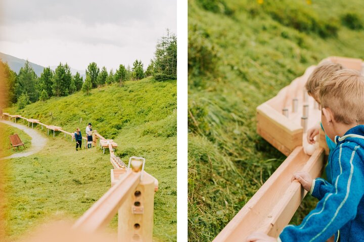 Nel mezzo delle montagne Nockberge, sulla Turracher Höhe (Austria), le piste per palline in legno di Sunkid invitano le famiglie a vivere un'esperienza di gioco speciale. Situata direttamente alla stazione a monte dell'impianto di risalita panoramico, a circa 2.000 metri di altitudine, fa parte del mondo dell'avventura "Nocky's AlmZeit". L'intera struttura è costituita da due piste di 30 e 50 metri di lunghezza, che guidano le palline di legno attraverso ostacoli, curve ripide e giochi sonori. Il movimento della palla può essere accompagnato attivamente, il che affascina soprattutto i bambini.