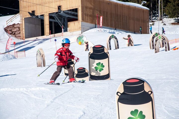 Sunkid ha potuto applicare con successo il suo know-how alla realizzazione delle figure, come archi, tunnel, "zangole di latte" e molte altre. Queste figure fabbricate individualmente, in combinazione con la nuova cabinovia e l'allestimento progettato da Input in questa zona del comprensorio sciistico, sono accolte in modo eccellente dagli ospiti. Questo può essere visto non solo nel feedback positivo degli ospiti, ma anche nelle cifre concrete dell'aumento delle presenze in questa parte del comprensorio sciistico.