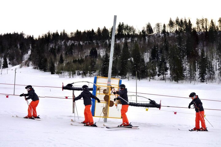 Con la combinazione di azionamento e deflessione della Sunkid Comfort Star in combinazione con la corda di plastica ATLAS senza arco della SwissCord e un supporto intermedio speciale fatto su misura, è stata trovata una soluzione ideale. Al fine di reagire facilmente alla profondità della neve altamente fluttuante qui, l'ascensore è stato anche dotato di un sistema elettroidraulico di regolazione dell'altezza.