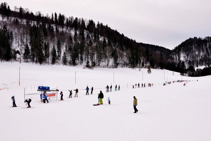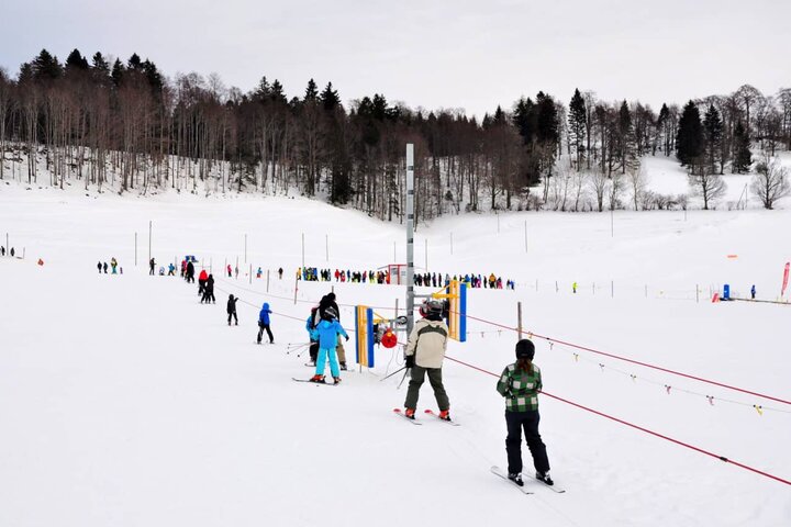 Come potete vedere nelle foto, il parcheggio della piccola stazione sciistica Les Bugnenets-Savagnières (vicino a Neuchatel) è molto spazioso e situato "sul versante opposto" della stazione sciistica. Gli ospiti sono così distribuiti su qualche centinaio di metri dal parcheggio in una specie di conca, dove poi si dirigono verso l'ingresso del comprensorio sciistico o la biglietteria.