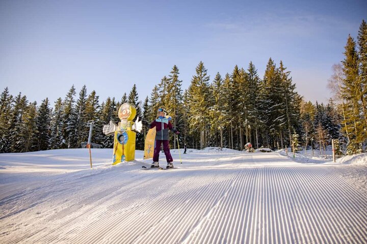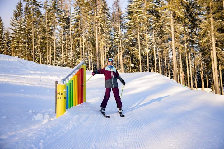 Il Sunline è accessibile con il nuovo skilift T-bar e offre il livello successivo per le piccole stelle dello sci per migliorare la loro tecnica. Curve ripide, onde e salti sono ancora divertenti anche per gli sciatori esperti.