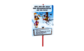 Unter dem Motto „Sicher mehr Spaß“ haben wir kindgerecht gestaltete Schilder, Informationsmaterial und interaktive Figuren entwickelt, um den Kindern spielerisch die Pistenregeln beizubringen. Für ein besseres Verständnis können die Produkte auch mit Speakern ausgestattet werden. Der Sound kann dabei durch Bewegung oder Knopfdruck ausgelöst werden.