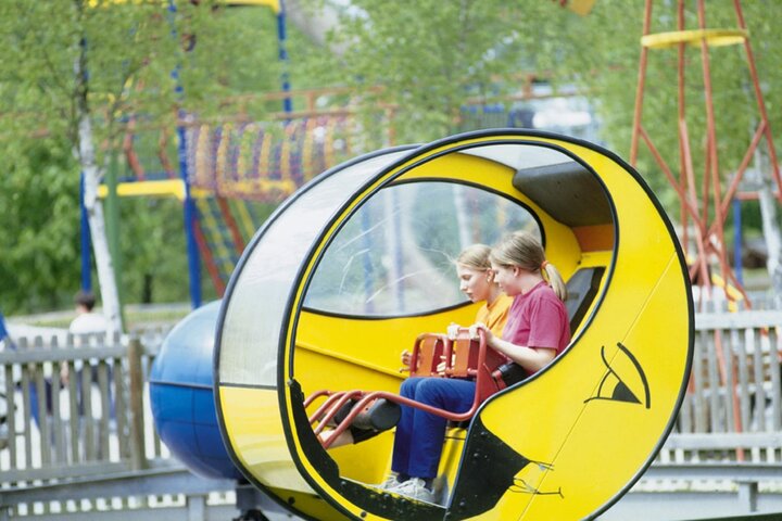 Der Luna Loop macht es möglich. Eine "Weltraumfahrt" in der sich drehenden "Mondkapsel". Durch Wölbungen in der Umlaufbahn erhält die Fahrt immer wieder neuen Schwung. Loopings vorwärts und rückwärts simulieren die Turbulenzen eines Starts und beim sanften Gleiten glauben sich die "Astronauten" kurz vor der Landung auf der Mondoberfläche.