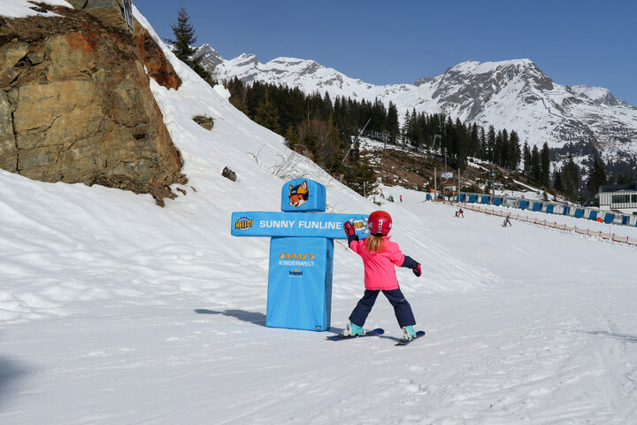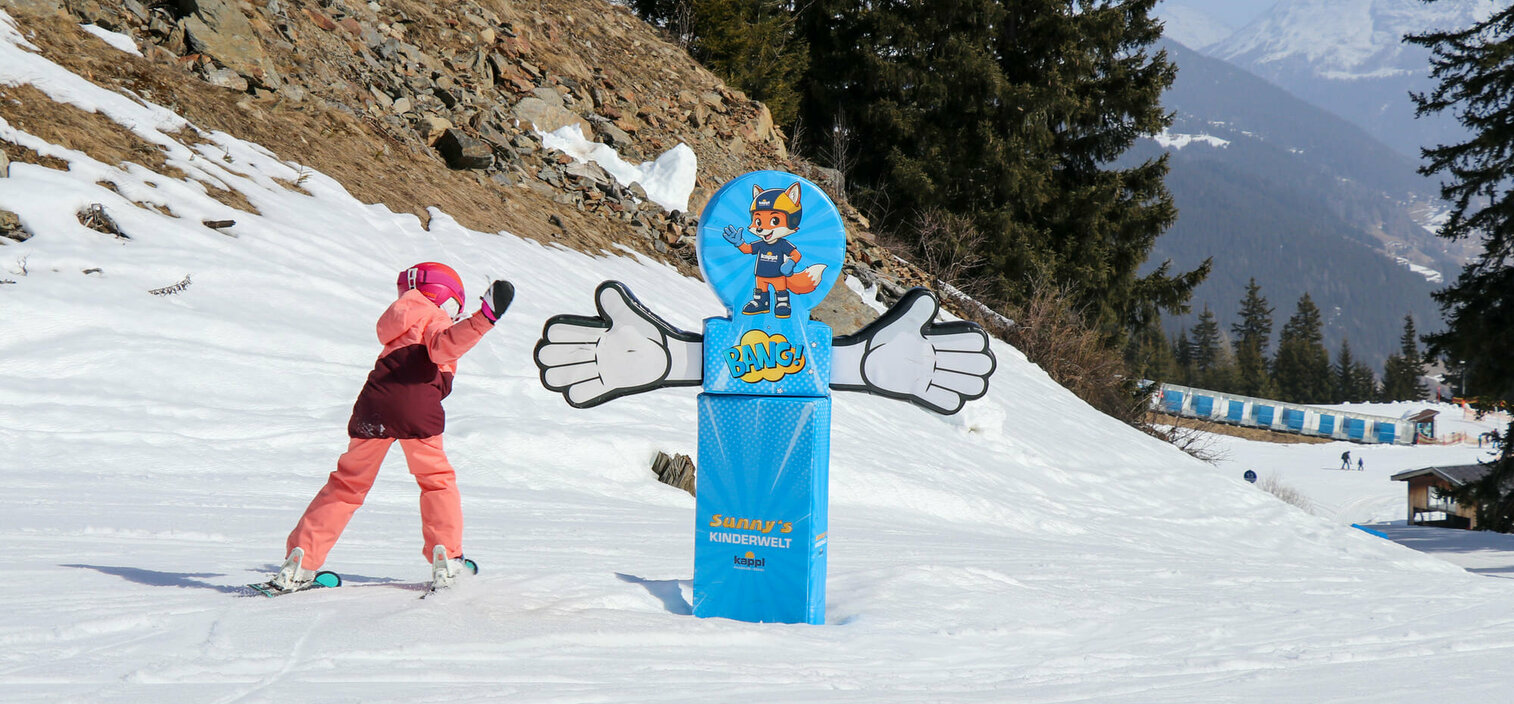 Das neue Maskottchen des Skigebiets Kappl, der Fuchs „Sunny“, strahlt den jungen Gästen nicht nur von den Gondeln der neuen Diasbahn entgegen, sondern ziert auch viele interaktive Elemente der neuen Funline.